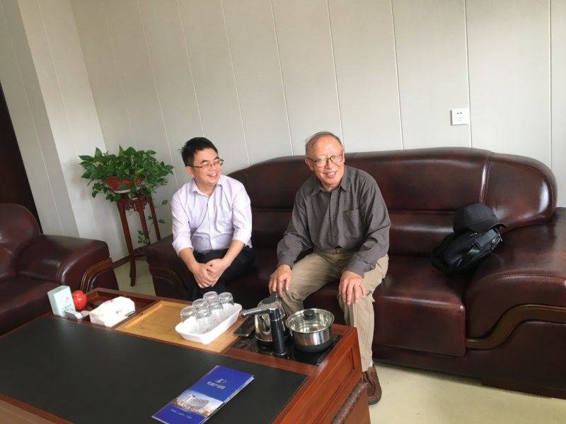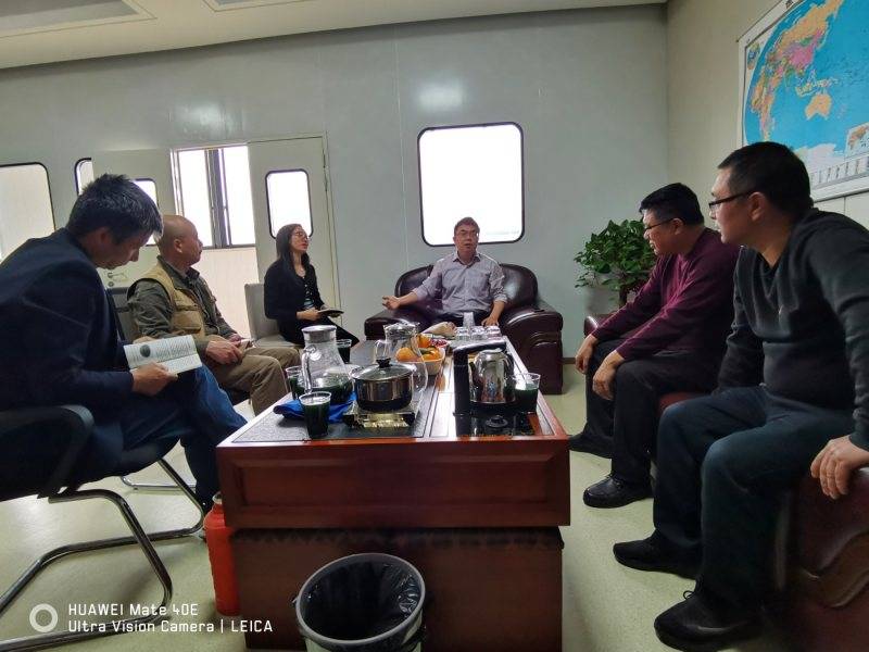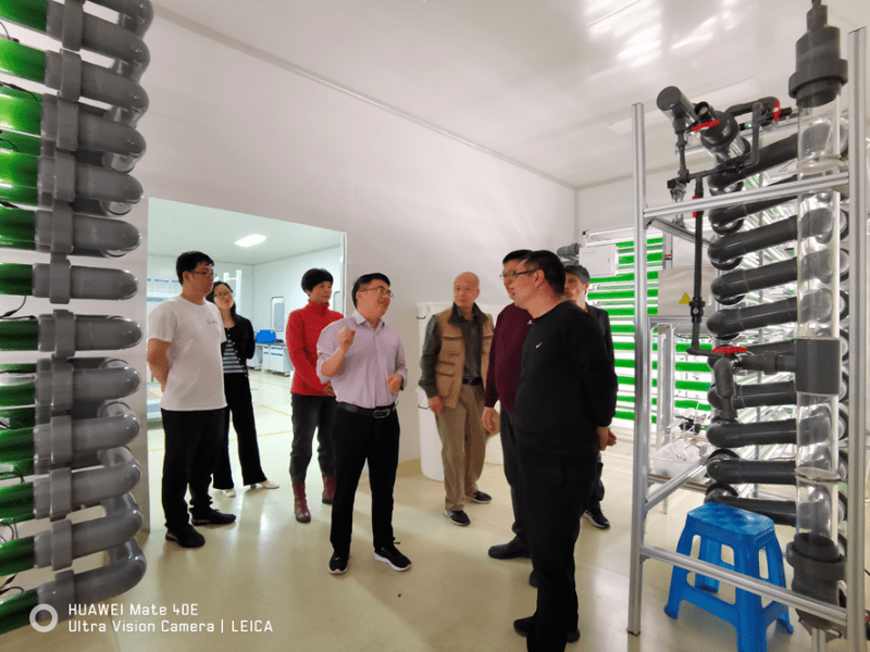 图为:董静平与来访权威专家谈鲜藻前景