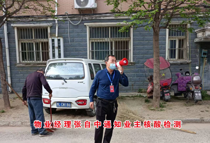 为防止小区业主随便出入,张自中当天就建立了小区业主通讯联络群,并吸纳单位分包人员、小区志愿者参加。在群里随时解答上级有关防疫政策、规定和防范措施、知识以及生活、出入等方面的问题。安排物业人员每天对小区有关区域进行消杀。快速协商、对接超市,保障小区居民生活用品和物资供应,缓解和降低居民的恐慌心里。每次全员核酸检测,张自中都冲在一线,亲自拿着高音喇叭,一栋楼一栋楼部置,一遍又一遍的吆喊。他腿跑肿了,嗓子喊哑了,从没有一句怨言。