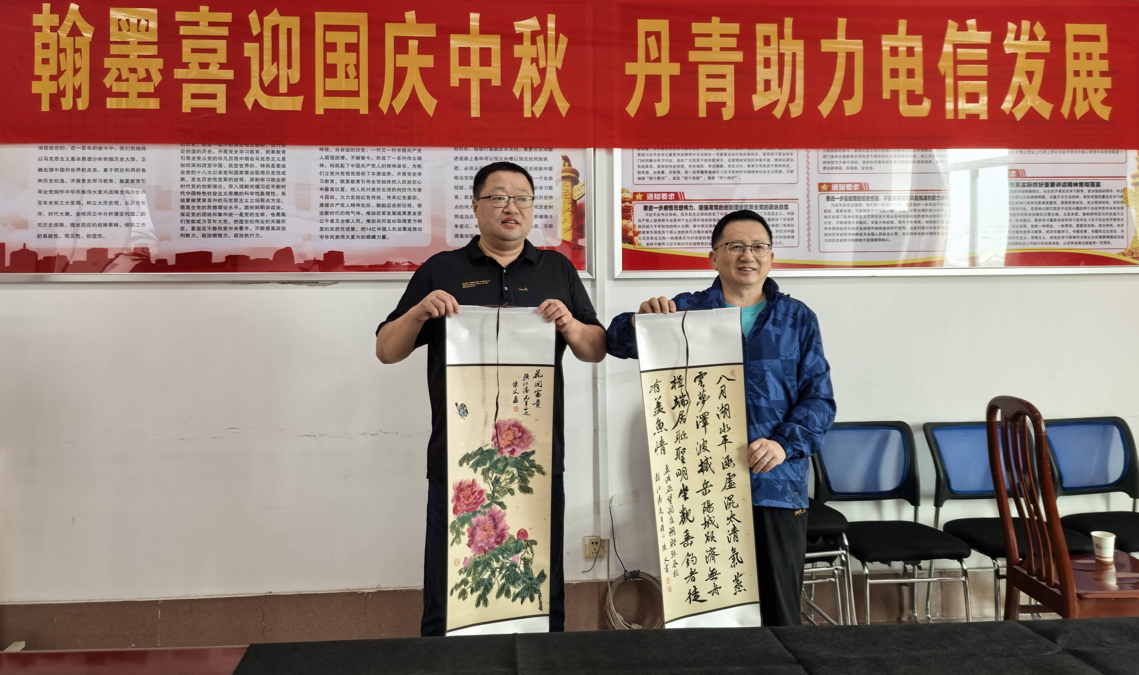 9月24日,在国庆与中秋佳节渐近的温馨氛围里,一场以“翰墨喜迎国庆中秋,丹青助力电信发展”为主题的书画笔会,在湖北省云梦县电信公司悄然拉开帷幕。