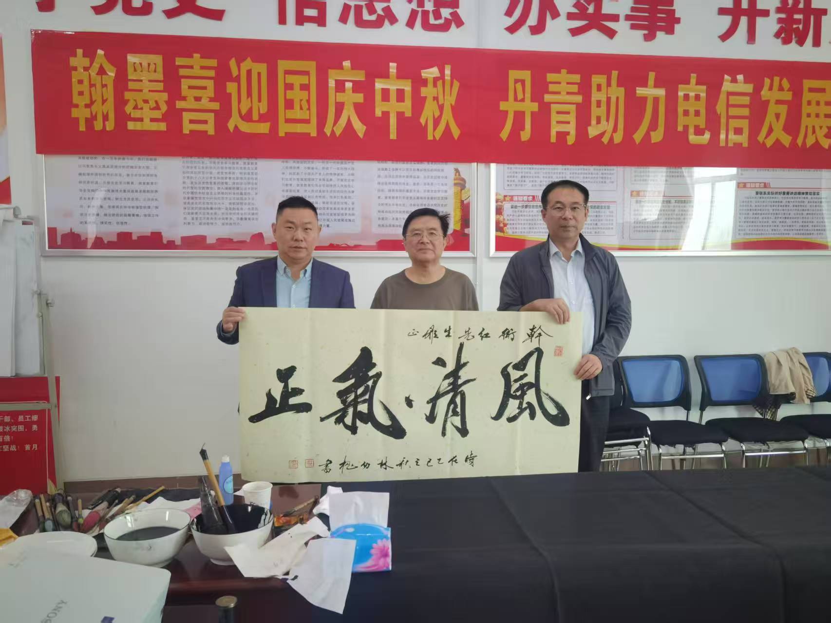 为了进一步激发云梦电信员工的工作热情和拼搏精神,国家一级美术师林幼槐与中国硬笔书法协会理事、书画家陈艾,带着对艺术的热爱和对电信事业的支持,来到了活动现场。他们在笔墨纸砚间,用书画的力量为电信发展助威加油。