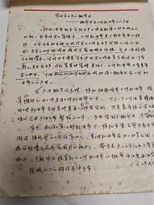 这样一来,我就把晚上时间交给了“斜土路”,住得不远的斜土路上,有家地下录像厅,是地下室,都是武打的,每晚看两部。一个月培训快要结束,同住的一位老同志才悄悄告诉我,是因为上海本地的有个参加培训的人,他们晚上是回家住的,在家里学习把人学没了。第二天发现的时候,灯还开着,桌上翻开的讲义课本和作业。培训结束,我除了除了每晚两部录像外,还带回来一篇论文《劳动定额中的概率论》,有七八张纸,要不是前年搬家翻出来,早忘了。