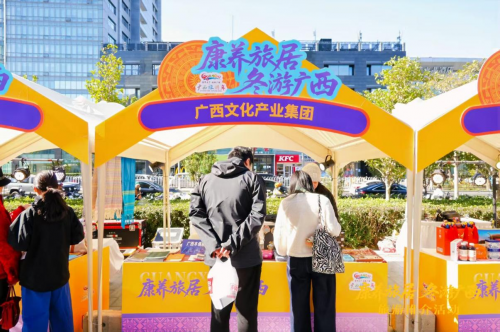 当日上午“康养旅居 冬游广西”文旅体验活动在北京市朝阳合生汇开展,独具广西特色的文旅商品展销吸引了许多北京市民游客驻足。