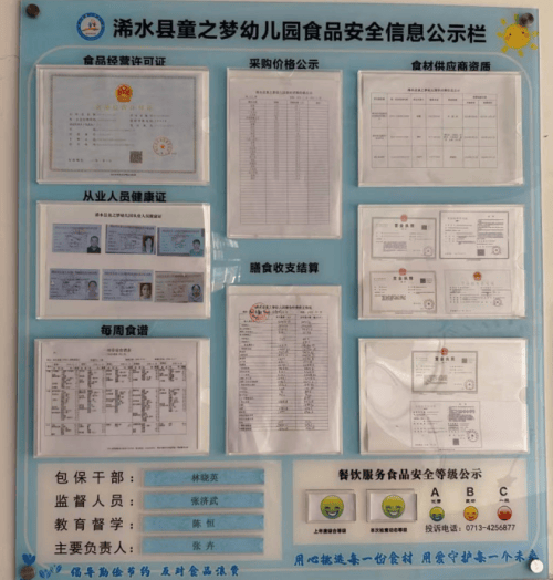 走进童之梦幼儿园,食堂门口的公示栏总是格外引人注目,这里俨然成了幼儿园的“阳光窗口”。与以往简单公示食谱不同,这里的内容可谓“包罗万象”:每周精心制定的带量食谱、当日主要食材的采购价格、所有供货商的资质证明、食堂工作人员的健康证明等基础信息一应俱全。更具创新性的是,公示栏还详细展示了膳食经费的收支明细及占比分析。一份刚刚张贴出的十月份膳食经费收支报表,清晰罗列了本月伙食费的收缴总额、各类食材的采购支出、水电燃气等能耗支出以及最终的结余金额,每一笔开支都做到了有据可查、一目了然。