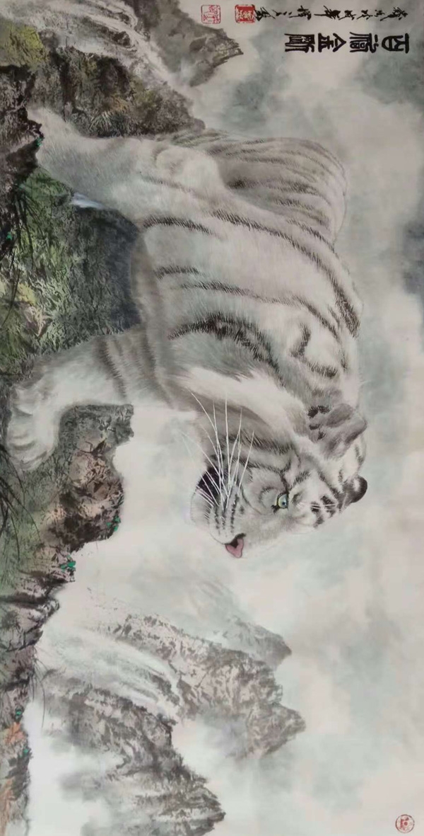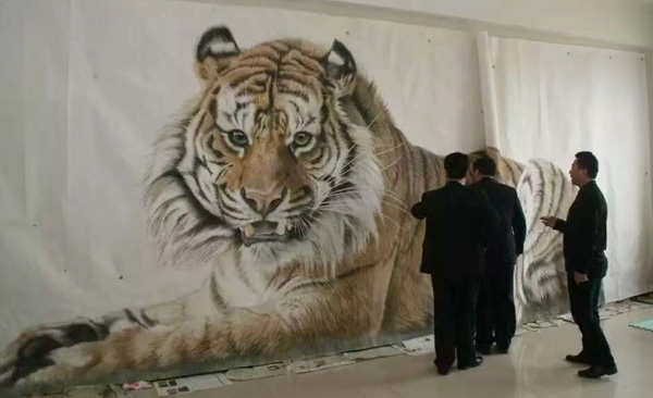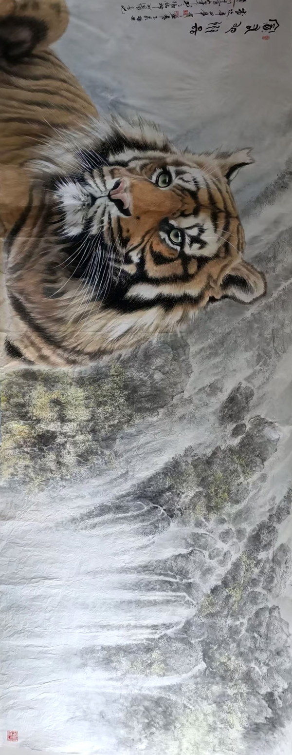 卢成之画虎,得到牡丹江大学领导师生的大力支持。做为牡丹江大学艺术学院美术教研室主任卢成之,感恩图报,羔羊跪乳,乌鸦反哺。他尽力传薪播火,教学相长,身体力行带徒弟,教情怀,教技艺,培养出一批批虎气生生的弟子。“山不在高,有仙则名。水不在深,有龙则灵。” 卢成之画虎扬名后转而画龙,虎跃龙骧,千载一人,乃天下之大才也。笔者以为,校方应该更好地为他提供条件,提高待遇,养住这条“大鱼”,帮助他创造第一流的工作,避免被别人挖走或北雁南飞。