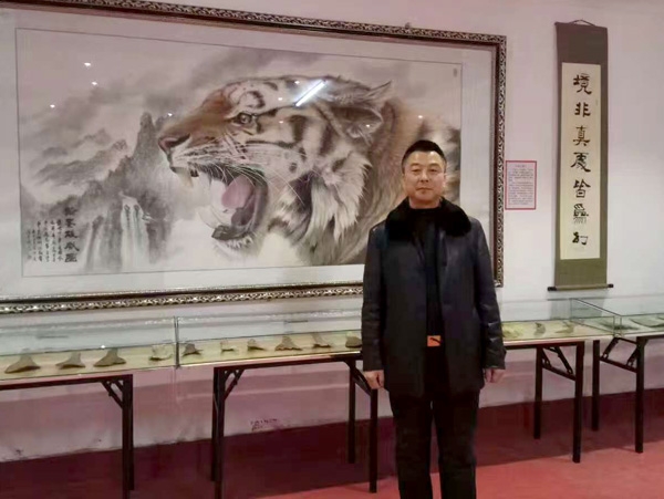卢成之特别钟爱老虎,简直到了痴狂的成度。为了积累素材,他经常去东北虎园基地观察、写生、速写,与虎为伴、为师、为友,甚至虎我不分,视虎为手足兄弟,自己的生命,熟悉他的人都管他叫“虎痴”。