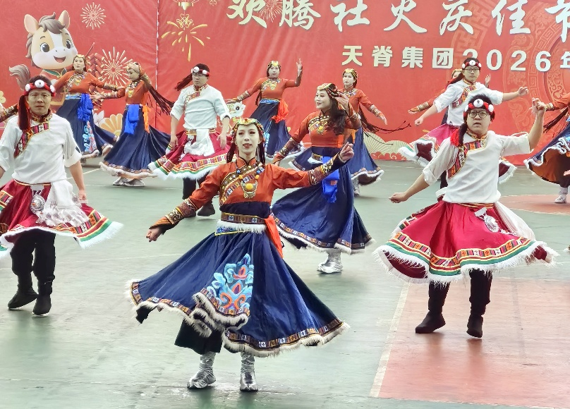 刚柔并济的藏族舞蹈《欢庆》,舞姿昂扬,将节日喜悦转化为干事动力,激励全员以饱满状态投身年度工作。