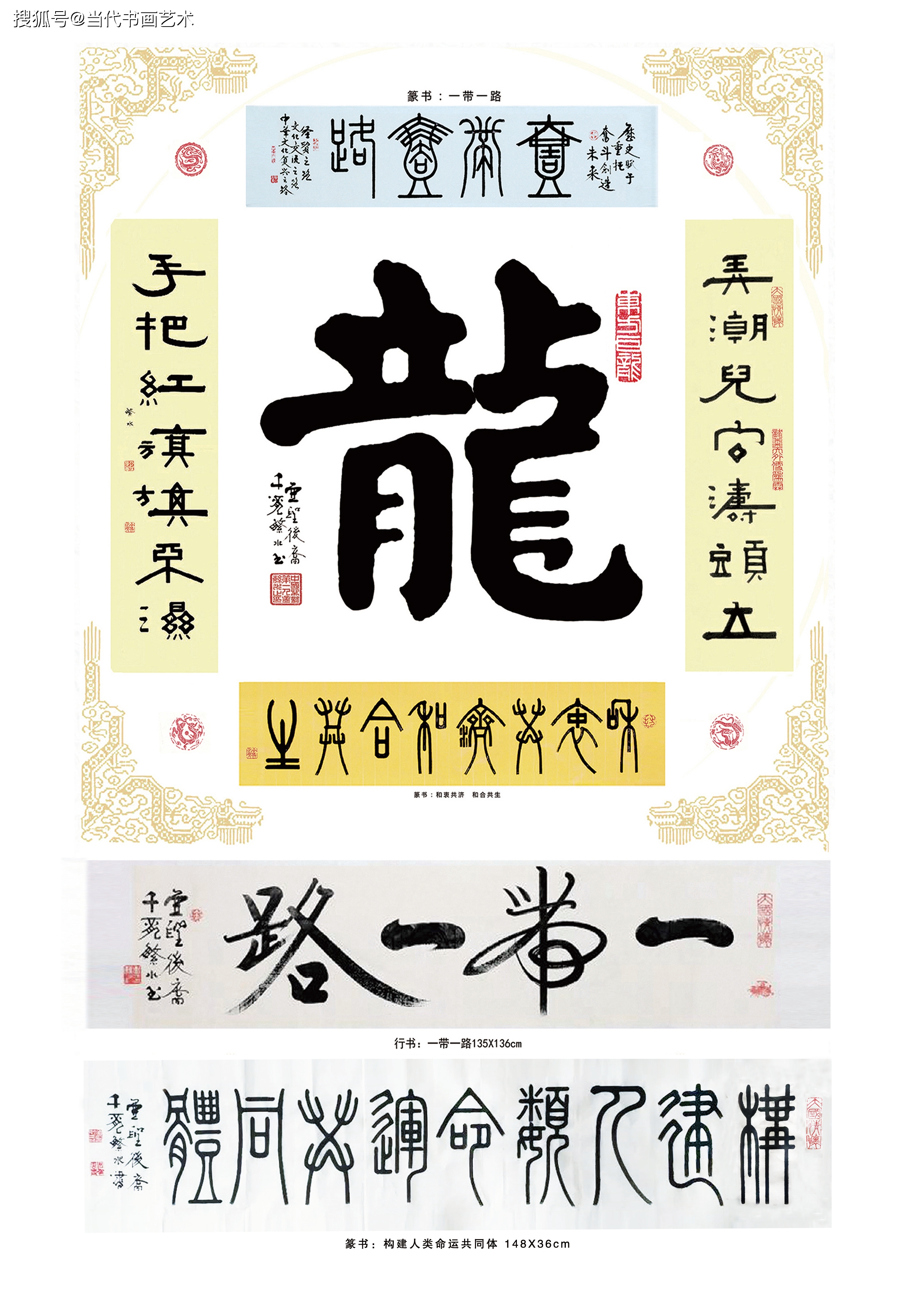 92年首创大型书法《国魂》双百龙马图唐三彩大型书法壁画,被新华社撰文称赞为“这是中国第一幅书法壁画”。08年为北京申奥创作的百米书法长卷《中华千龙图》被央视主持人称赞为“中国人写龙字最多的代表”,享有“中国写龙第一人”之美誉。他先后被授予“2005年度十大新闻人物”、“中华龙文化当代十杰”、“老文化拥军模范”、“全国社区志愿者先进个人”、“文化部第七届中国文化艺术政府奖<文华奖>最佳创作奖”、“中国艺术飞天奖终身成就奖”、“感动中国文化人物”、“传播龙文化的特使”、“人民艺术家”、“中华传统文化标杆人物”、“2017年度感动世界艺术人物”、“2017·世界最美艺术大师”、“中华文化终身成就奖金奖·中华文化传承人”等荣誉称号。