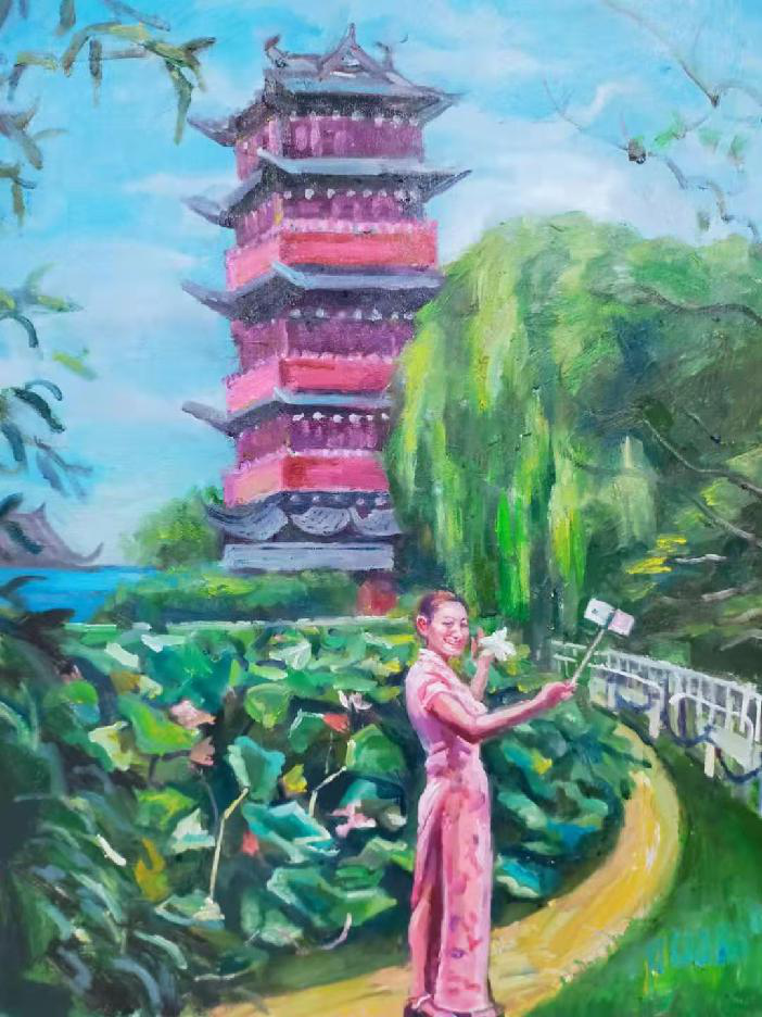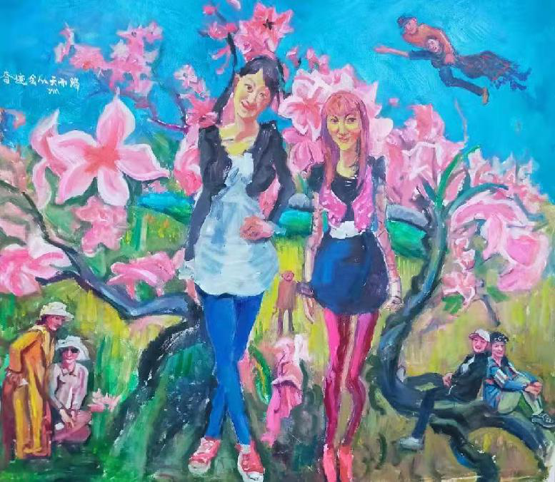 如果艺术家心里没有阳光,绝然不会把写实油画创作得如此灿烂。饱满的暖色调是渲染的主旋律,和谐的空间结构总是令人赏心悦目。看这样的画,如果没有人提醒,你不会认为这是一位疾患中风者的作品,因为画里的天真、浪漫、积极、温暖总是会让人意想到,这应该是一个充分享受着生活惬意者的佳作!