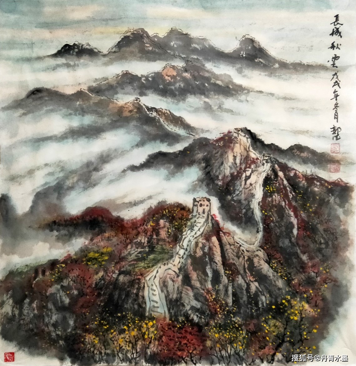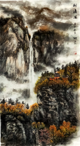 又有重彩铺陈,艳而不俗,经由色益墨,墨映色的相互融合,把自然之山水写意得五色焕神,能不生气韵?所以,经过色不碍墨,墨不碍色的酝酿,让郭德先生的山水作品成为浑厚华滋的经典!仰观其画,东崖复沓蔽轻雾,西峰峥嵘喷流泉,云来山更妙,云山共高下!有极强的欣赏性,也可以装饰万家屏障,雅俗共赏!