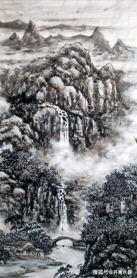 谢赫论山水,首论气韵生动。气韵不可言说,但是可以心觉。有气韵可知适情切意,赏心悦目。无气韵不可观,匠工!观赏郭德先生的山水作品,极见苍润的诗情画意,一天清淑气,万里碧榆风,气韵扑面盈心,生动到天质自然!写意云上山巅,风行雨霁,百尺悬瀑,寒林萧萧,都依水为道,以墨为器而作渲染,浓墨复沓,层次分明,水墨互破,氤氲妙见,能不生气韵?
