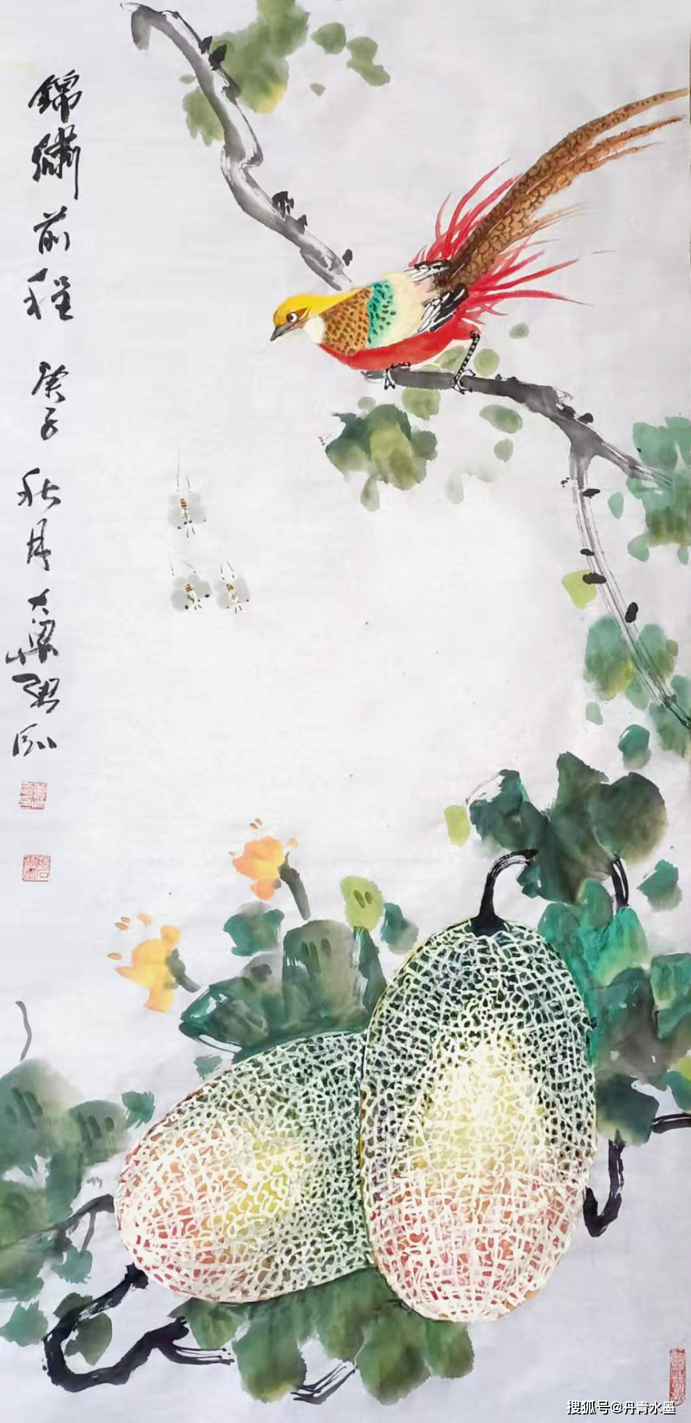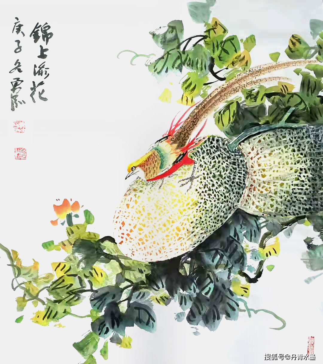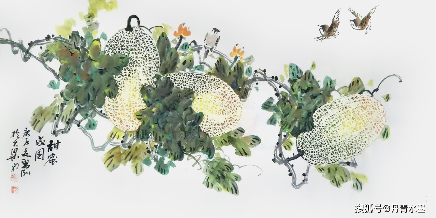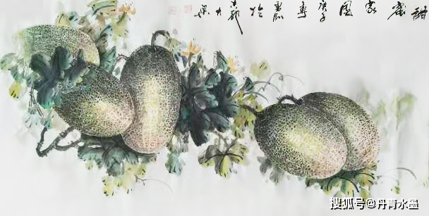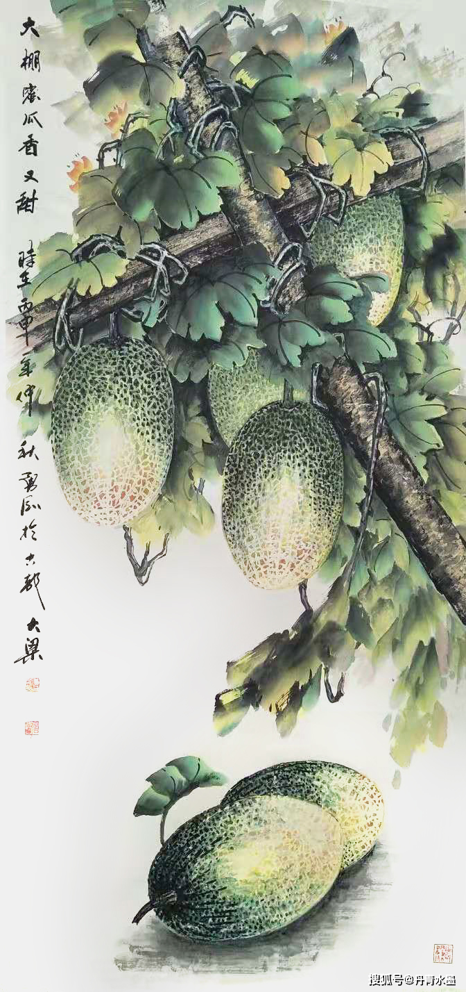 七十年代末,他初识哈密瓜,被那神秘天然的奇纹妙路所吸引,更被那硕大圆满的外型、香远甜蜜的特质所触动。凭借画家特有的敏感和洞察力,他认为,哈密瓜那硕大,圆满,和甜蜜的特质,正是我们新时代国富民强和人民美好生活的象征。他毫不犹豫地要把哈密瓜作为物象本体搬上宣纸,充实自己花鸟画从未涉及的题材,这是一种激情所致,同时也是一种新的挑战。