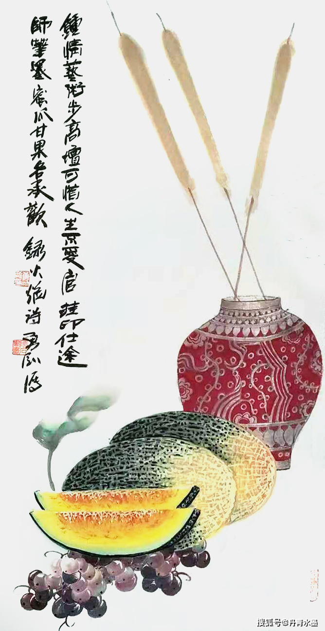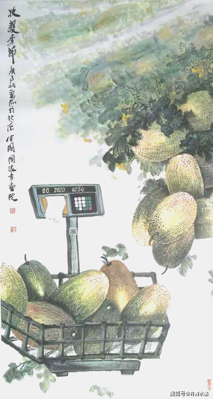 他把哈密瓜搬上了宣纸
